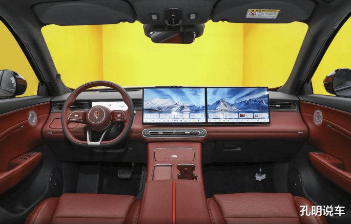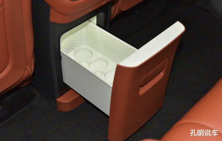 打开车门之后就能够感受到这款车为什么比较类似理想问界,整个中控台面看起来和理想l系列确实是非常相似,尤其右侧直接提供了双大屏,这种副驾驶大电视的配置现在已经很主流了。当然也有带折叠腿托的宽大座椅以及容量不错的双温冰箱,实际感受确实和那些比较热门的主流新势力suv车型非常相似。