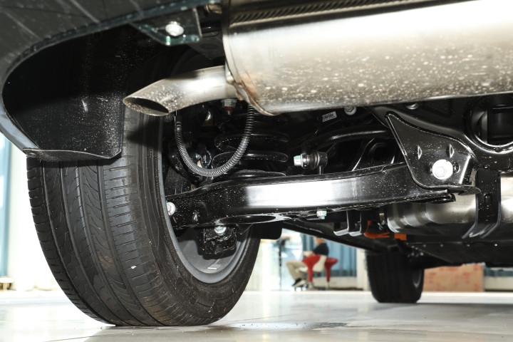 底盘的细节也能感觉到用心,前后轮距分别是1585mm和1580mm,这种宽轮距设计对稳定性帮助挺大。整备质量1900kg,满载质量2450kg,车身用料看着挺扎实,开快的时候不会有发飘的感觉,跑高速心里很踏实。