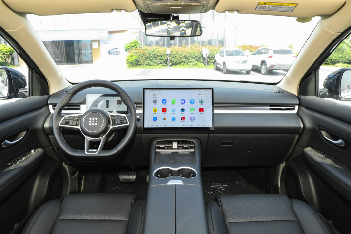15.6英寸的中控屏看着很舒服,支持HUAWEI HiCar和Carlink互联,不是简单的投屏。第一次连接的时候输个验证码就行,之后上车自动就连上了,手机上的导航、歌单能直接弄到车机上,还能设置快捷指令,一键导航去常去的地方,用起来很方便。手机APP功能也挺全的,能看车辆状态、远程开空调,上次夏天提前十分钟打开空调,上车的时候车里已经凉快了,特别实用。还能管理充电、预约保养,甚至分享数字钥匙,家里人用车也方便。 安全方面做得也到位,比低配车型多了前排侧安全气帘,万一发生碰撞,能多一层保护。